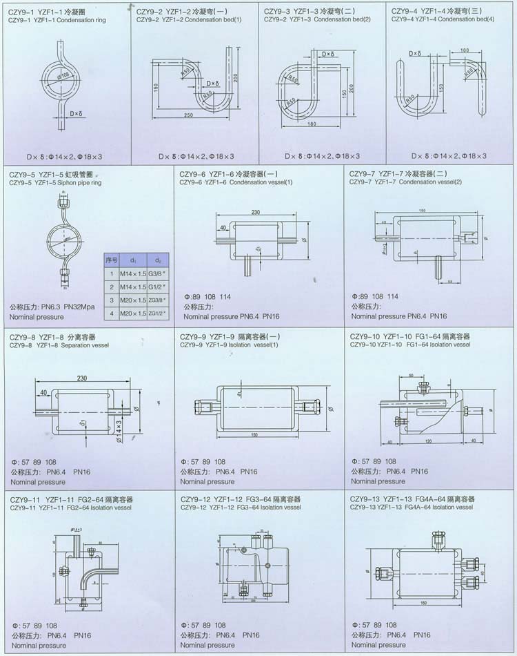 說明(míng):本儀表輔(fǔ)助容器部(bu)分收集了(le)煉油、化工(gong)、冶金生産(chǎn)中壓😄力、流(liú)量、液面測(ce)量用的隔(ge)離器、冷凝(ning)器、分離器(qì)😘、除塵器、液(yè)🧡面測量用(yong)的雙室平(ping)衡器和分(fèn)析儀表用(yòng)的一些預(yu)處理裝置(zhì)以及🔞各種(zhong)冷㊙️凝圈、冷(lěng)凝彎等産(chan)品。容🧑🏽🤝🧑🏻器的(de)制造🤞、試驗(yan)和驗㊙️收均(jun1)按機械部(bu)分鋼制焊(hàn)接容器技(ji)術條件執(zhí)行。